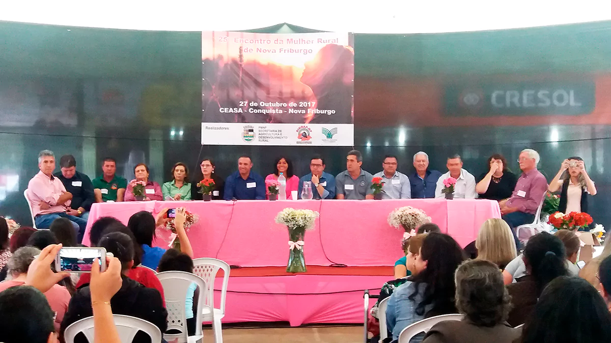 Cerca de 400 mulheres rurais participaram do 25º Encontro da Mulher Rural de Nova Friburgo, no Ceasa de Nova Conquista, um evento realizado pelo SENAR- Rio, Prefeitura Municipal e Sindicato Rural de Nova Friburgo, através da Secretaria de Agricultura e Desenvolvimento Rural e Sindicato dos Agricultores Familiares de Nova Friburgo, com o apoio do Ibelga (Instituto Bélgica- Nova Friburgo), Cruz vermelha, entre outras.